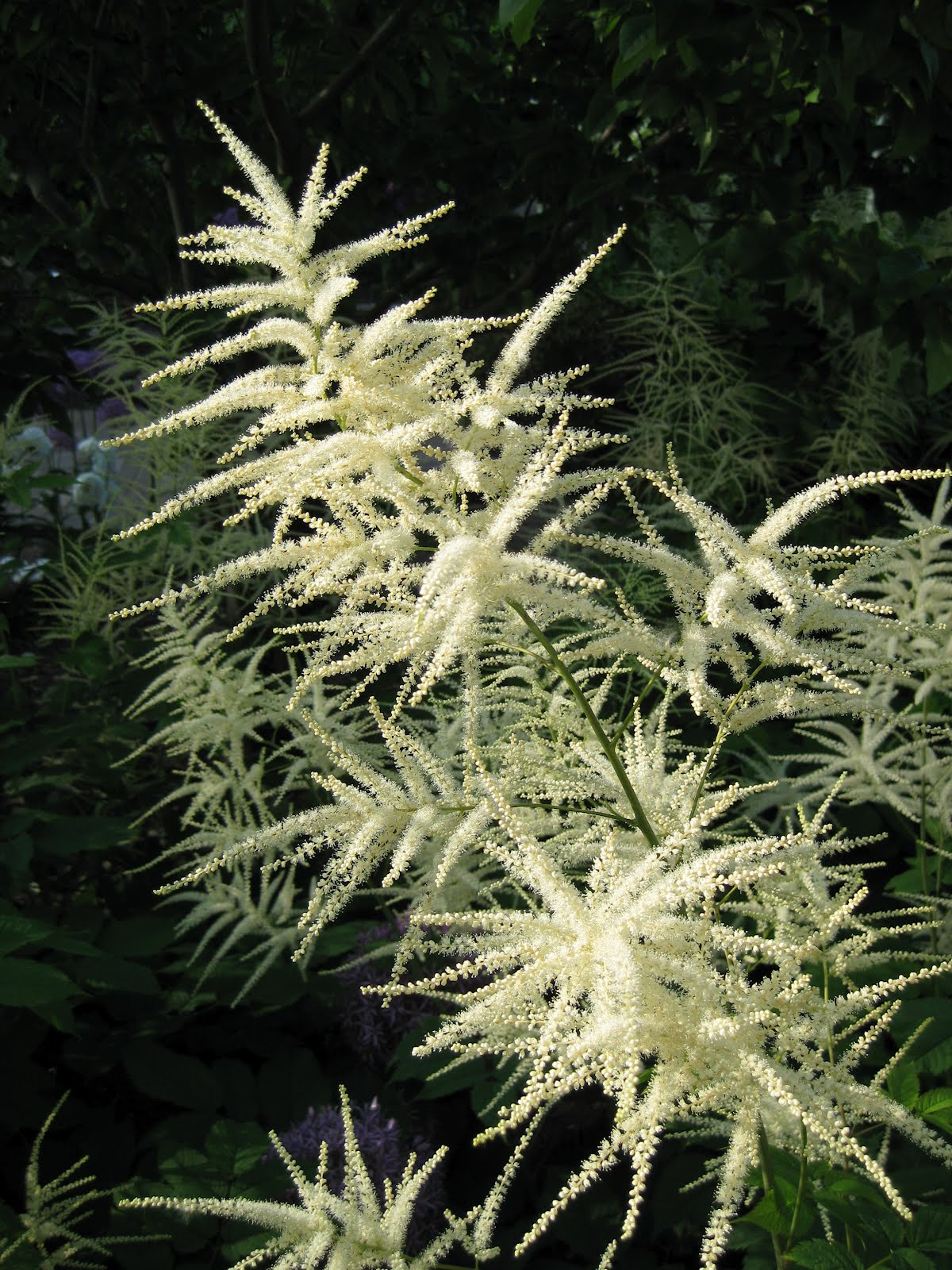 Another more compact selection of goatsbeard is Aruncus sinensis 'Child of Two Worlds' which hovers around 3' or so in height. Also called 'Zweiweltenkind', this variety