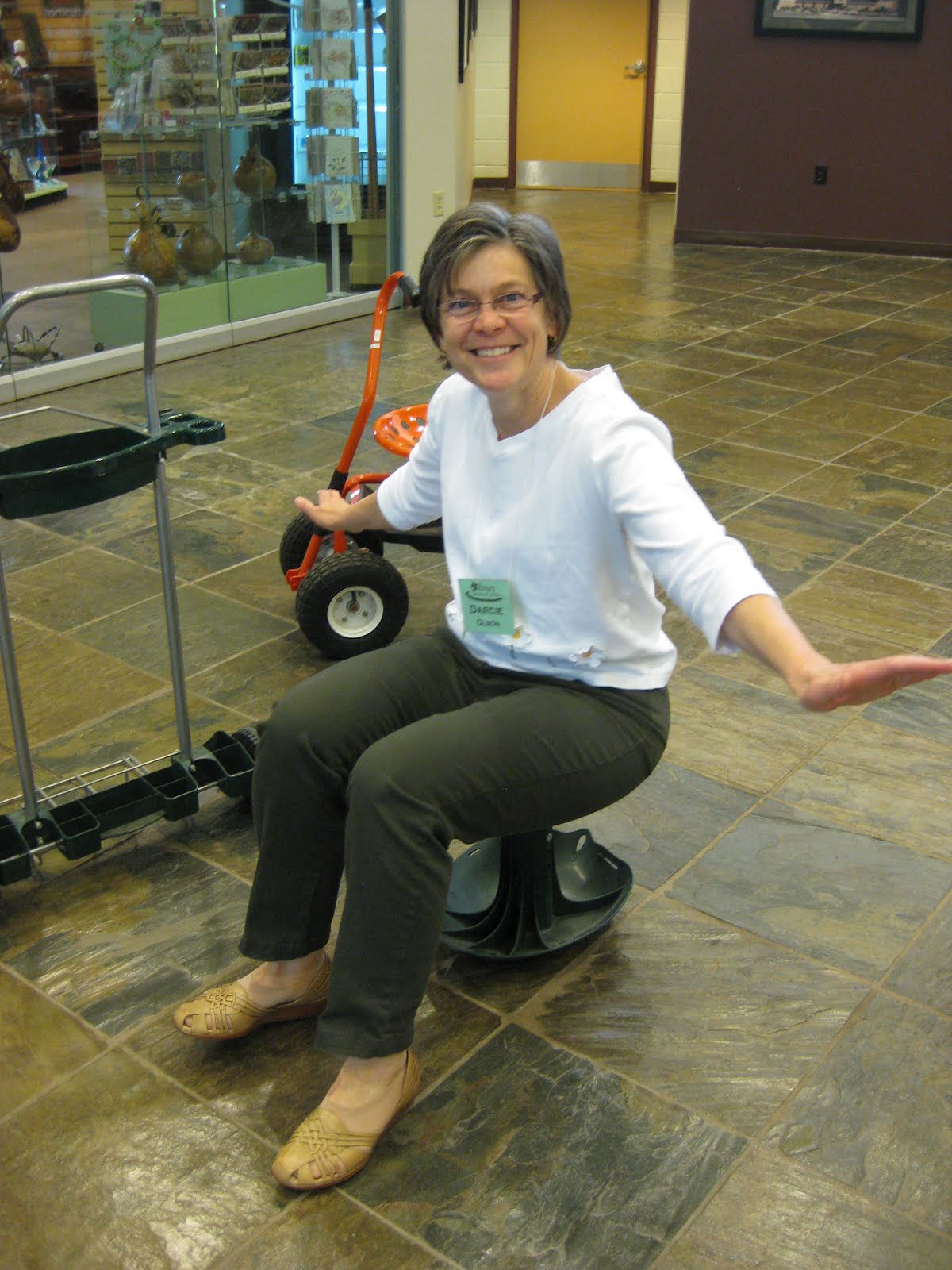 nate a three-tiered, repurposed, pvc planter that we'll display out in the Ornamental Edible & Compact Vegetable Display this year. I'll post a picture soon as this is a neat set-up. I took them on a tour of the gardens and they enjoyed seeing some of our other innovative pvc, culvert pipe and pallet planters in the gardens. Later in the morning, we had four students (Occupational Therapy) from Madison College (MATC) come and do a presentation on sensory gardens and the demographics that will utilize these spaces. These four are students of our volunteer (and MATC instructor) Darcie O. This group did a wonderful job and we had members of our Horticulure Therapy Committee (Art, Sharon, Darcie and Elaine), volunteers and some of the Board of Directors in attendance. To the right is the showy English bluebell (Hyacinthoides non-scripta) starting to bloom in the Scottish garden. Directly below is the showy flower cluster of the native blackhaw viburnum (Viburnum prunifolium). This large shrub also gets a nice fall color and has proven to be one of our shrubs for tough locations.