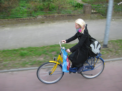 Directly above are just some of the amazing images I took at the Aalsmeer Flower Auction this morning. The size of the building and scale of operation were doubly amazing. Note the bidding areas with all the computer terminals. I saw two rooms such as this in the past. I was mesmirized by the number of employees and carts zipping around the sorting and shipping departments. We were also told it was a "light day" which seemed a contradiction in terms when observing the fast pace. Further below are some other images from today which lastly included a girl on a bike who is just one example of thousands we saw zipping around time. Not much energy left for blogging. Keukehnof tomorrow!