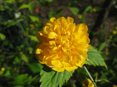 see how it goes! To the above right is another of the creative oak leaves that will soon be displayed out in the gardens. To the left is our biggest redbud (Cercis canadensis) in the Japanese garden which really is quite impressive both up close and from the distance. For a different form of this neat early bloomer, the Lavender Twist weeping redbud (Cercis canadensis 'Covey') offers some nice interest. Here (to the right) it is positioned near the water adjacent to the Japanese garden and zig-zag bridge. Further below is the showy double bloom of the Japanese kerria (Kerria japonica 'Pleniflora') which really packs some color. There are other kerria varieties with single flowers, variegated foliage, striped stems, etc. Kerrias are a tough "thicketing" plant for sun, part sun or shade. All of ours are looking good right now. Further down are our white tulip (Tulipa) clumps looking nice in front of the Parker Education Center. The third photo down is another redbud (Cercis canadensis) shot with the arched bridge in the distance.