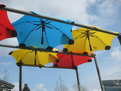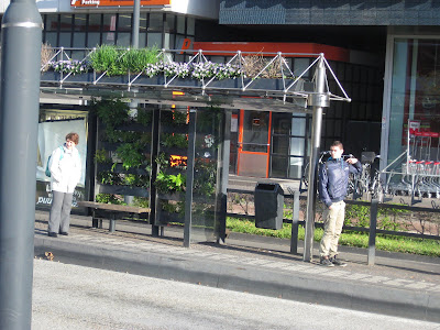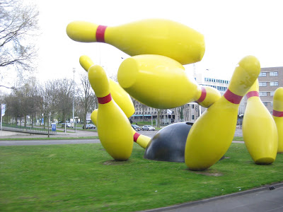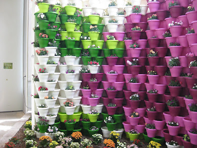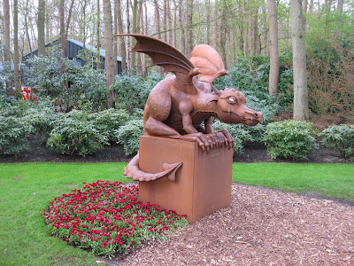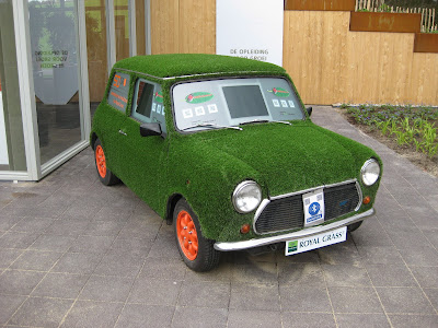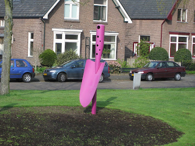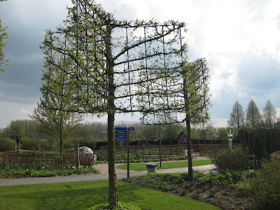 Today was a combination of dealing with jet lag and getting thru my piles of emails, phone calls, etc. I took a brief tour of the gardens this morning and everything looked great. It was nice to see that we did have some rain although the next batch of weeds is starting to appear. The grounds staff and volunteers have done a great job dealing with this advanced spring and all the duties that are required. All the photos here are from the Netherlands as I didn't get time to take garden shots today as I was downloading my 4,500 other shots from the trip! These all fall in to the "cool, weird, interesting and/or scary theme". In brief (and in sequence), the picture above illustrates a mushroom sculpture at the National Asparagus & Mushroom Museum while the one directly below is a cool "green" bus stop in Eindoven. Posted in no particular order, further down is an interesting sign in Amsterdam (marijuana is technically illegal), colorful stacked pots at the Floriade, a Dutch clog sculpture at the Floriade, part of an umbrella canopy at the Floriade and a huge bowling sculpture in Eindoven. Continuing, there is a weird display with suspended trees (Floriade), a close-up of an "insect hotel" (great for mason bees, etc.), a "green" car (fake grass), two cool driftwood carvings (Apeltern Gardens), an interesting form of a London planetree (