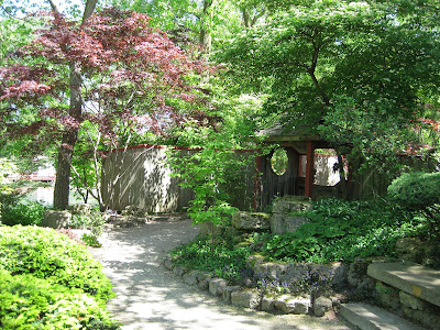 r. The sweet fragrance of black locust is delightful. To the left are the bloom clusters on the red buckeye (Aesculus pavia). I've shown these blooms a couple times already this spring but make no apologies as I can't stop taking pictures of these bright flowers! Early hummingbirds should be targeting the blooms on this small-statured tree very shortly.Tonight was the Local Artisan Fair at the gardens (4 pm - 8 pm). I'm sure it was a success as these types of events seem to continue to attract increased attendance each time we have them and the weather was perfect. With a nice forecast for Mother's Day, we expect to see some large crowds and our Mother's Day Brunch is almost sold out (500+ attendees). We hope all brunch attendees will then head over to the Spring Plant Sale! Although our white tulips (Tulipa) are done in front of the Parker Education Center, our white ornamental onions (Allium 'Mt. Everest') are blooming strong. To the right are some of the 500 that are currently blooming out front. These "puff balls on a stick" are quite architectural as they appear to be floating. We had the Horticulture Club from Jefferson (WI) High School come visit the gardens today and I was able to give them an introduction to the gardens. They looked like a nice group of kids and perhaps our next generation of garden workers, volunteers and supporters! Below are shots of the fern/moss garden (Ma Chii' in the distance) and the Japanese Garden respectively.