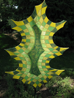 Farm Bureau. Janice also did quite a bit of watering out in the gardens and finished up some veggie planting and watering at the Horticulture Center. Jenny did a nice job matching up more labels in the yard and organized many of our remaining plants. She and I have developed a good system for making sure our plants go out with labels which, while common sense, is not always as easy as it seems. Jenny also watered and finished the day with some old-fashioned weeding. Pat did a nice job shearing some shrubs this morning and continued removing weeds and woody seedlings from our east border prior to his painting stint in the gazebo. I think the gazebo is finished now and looks great for the wedding(s) this weekend. To the right is one of the 40 oak leaf garden art projects out in the gardens. We have all but one placed out in the gardens and Sue M. is developing a nice brochure/map to direct visitors to these unique art pieces. More planting tomorrow, plenty of watering and a big focus on getting ready for the work day this Saturday (did I mention 8 am until 12 noon?)...Directly below is the flagstone work done by Becker Brothers Masonry over the past four days. This area is the transition from the reception garden, under the Parker Pen archway and in to the sunken garden. The former stonework was crumbling and presented some very serious safety concerns (tripping). This looks awesome and was well constructed.