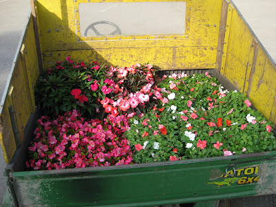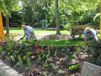 I think I observed all the major types of garden work today. There was planting, weeding, watering, mowing, fertilizing, etc. Our grounds staff on Tuesdays is
