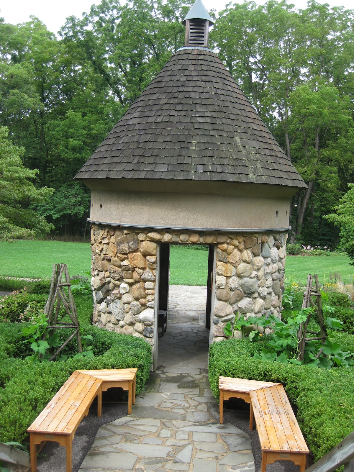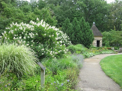 Hydrangea paniculata) to the left. That is where I wrenched my back 15 years ago loading up crabapple logs from a removed tree. My back has never been the same but I did enjoy maintaining that border and the herb garden in the distance (with the dovecote structure). I had four gardens to maintain and while we had volunteers, they weren't as numerous as they are at RBG.