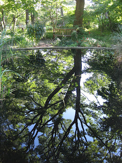 W.J. Beal Botanic Garden right on campus. Founded in 1873 by Professor William James Beal, this garden is considered the oldest, continually operated university botanical garden. This small garden has 5,000 types of plants. About seven years ago, the RBG grounds staff did a three day tour of gardens in Michigan and we ended up in this same garden on campus (we also toured the rest of campus). This garden is certainly a teaching garden with very informative signs for a vast array of plant materials arranged by family, region of origin, function, etc. My favorite section is the labeled collection of weeds! This was really a nice garden and not 10 minutes from my hotel. A couple of photos down is a cool reflection of a tree in a pool with a bench on the far side. The conference gets more involved after lunch tomorrow but my morning will be absorbed by a trip north to Midland, MI to see