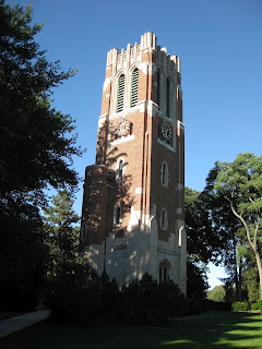 MSU) campus. Once I got all my stuff settled in the room, I decided to walk around campus. I was struck by two things immediately. Number 1, It was still quite sunny and hot and I was uber-thirsty and number 2, I hardly saw anyone walking around. Granted, fall semester doesn't start for another month but I had free range of the campus. I've been to MSU a couple times in the past and love the campus. I noted the black squirrel population as I remembered seeing it in the past. The architecture was quite nice and despite some significant construction in th