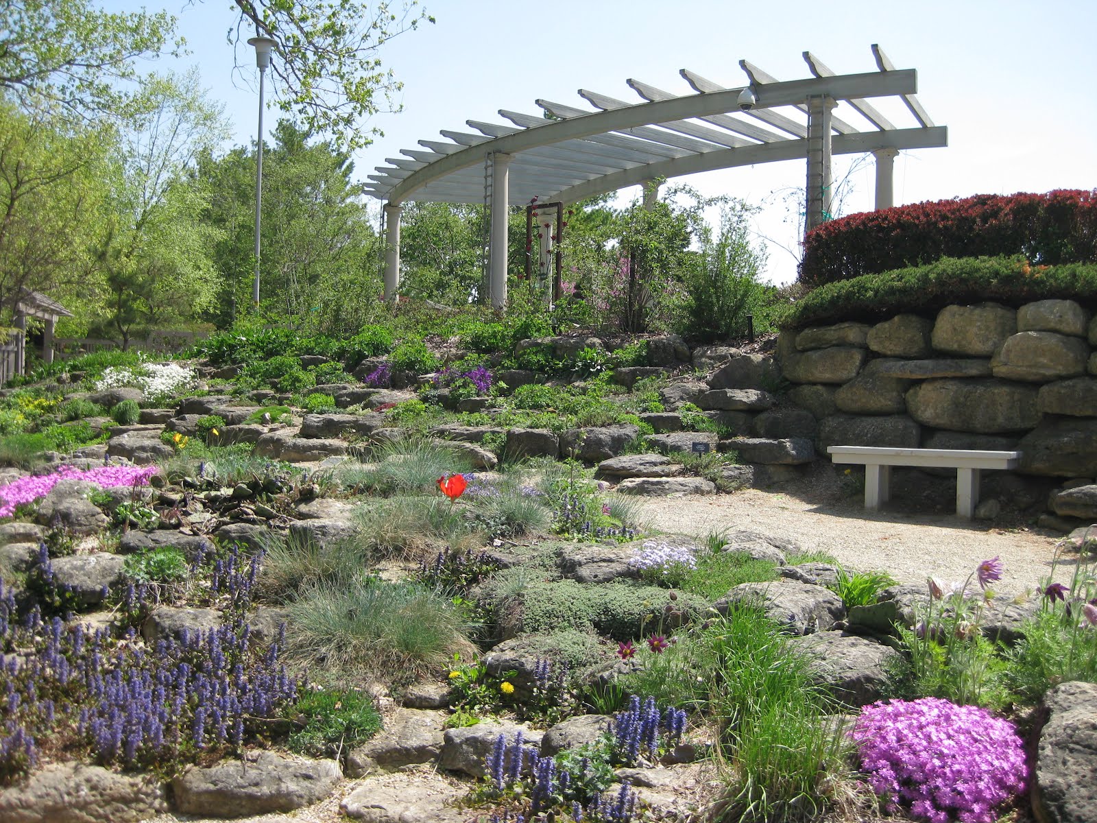 This morning, we had a wonderful collection of volunteers descend on the gardens to help tidy up and plant in the alpine garden. I should mention that my account here is secondhand as I was unable to make it to work due to becoming sick last night and experiencing a bed-ridden day today. Larry gave me updates throughout the day as he and Bill went about their tasks of watering and preparing for the three weddings today. Sue & her granddaughter Lily were in to help pick produce. Jumbo Jim also had four RECAPPERS out in the gardens today helping tidy up the Japanese garden. Larry also mentioned seeing John and Jackie.Iza and Ed G. coordinated the volunteer efforts in the alpine garden (seen above in April) which was the second such work day that we've had with these volunteers, all from out of town. All the volunteers are members of the WI/IL Chapter of North American Rock Garden Society and have personal experience with their own rock gardens. It was great to have their expertise and we really appreciate their efforts. Larry mentioned that they were so efficient with planting the first wave of 150+ perennials that they took out their "back up" plants as well. Great work!