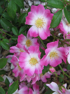 pleased with the general garden appearance and overall color schemes this late in the year. I have some ideas for 2013 that should work well although we need to get thru 2012 first! To the lower right are the beautiful, single blooms of the 'Confetti' rose (Rosa sp.) from Bailey Nursery. This trial rose is at our Horticulture Center and has been blooming strongly most of the summer. I like that combination of pink and white with the yellow center.