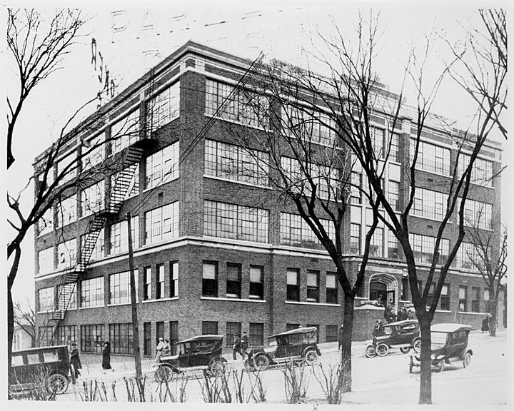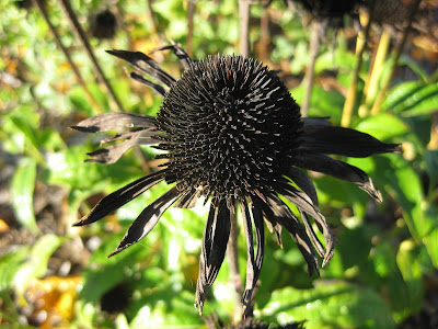 We knew there would be rain today and after examining the radar, we figured we had until lunchtime to get out in the gardens before a sigificant system hit our area (which is exactly how it all played out...). The morning, while overcast, was very productive and we didn't see rain until about 11:30 am. Once it started though, it never stopped and continued throughout the afternoon with varying degrees of intensity. Some of got saturated on our return to the Horticulture Center and my timing for our fall turf fertilization was perfect. The top photo of the archway leading from the reception garden to sunken garden (or vice versa) was quite nice this morning with the magnolia (Magnolia 'Spring Grove') in the background reaching peak, golden fall coloration. This archway, as we mention on all of our tours, is from the Parker Pen World Headquarters and is on permanent loan from the Rock County Historical Society. Janice just recently passed along the historic photo directly above showing the Parker Pen building and you can see that archway in the lower right of the photo! I've become so used to seeing that arch and have gone underneath it 100s of times. However, it is quite beautiful and is a nice transition between gardens. The archway also frames an axis or sight line from the Druid sculpture (another historic element) in the reception garden to "The Flame" sculpture in the sunken garden (created by George Parker III). Directly below are some other recent shots out in the gardens. Looking like a black coneflower, directly below is the dried version of the 'Green Jewel' purple coneflower (Echinacea purpurea). This stage caught my eye and is probably going to be more attractive to birds as the season progresses. The next photo down shows the fiery orange fall color on the Sunjoy 'Golden Pillar' upright Japanese barberry (Berberis thunbergii). The golden foliage on this upright shrub is showy all season but the fall color certainly adds to the show. I'm not a big fan of barberries (Berberis sp.) because of their rampant reseeding, particularly in woodlands (deposited by birds). However, this Genus typically has awesome fall color that is an unquestionable asset. The third photo down shows the foliage of the 'Plum Royale' coral bell (Heuchera) in the gazebo garden which hasn't been challenged by extreme cold yet and still offers a nice hint of color before the snow falls.