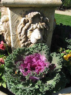 It was down right frigid this morning but the grounds staff jumped right in to their projects before the arrival of our Grumpies. Larry did run some irrigation in areas where we could use more moisture. While we're not worrying about annuals any more with the exception of a few containers, we're still so moisture deficient that our watering focus has turned to perennials, woody plants and turf. Larry also ran extension cords for me that will be utilized for our upcoming Halloween Walk (see www.rotarybotanicalgardens.org) and will also serve double duty by being utilized for the Holiday Lights Show (HLS). Big John spent most of the day in the sunken garden cutting back perennials and removing frosted annuals. He also took time to do some planting in the Scottish garden. Marv and Terry purged the terrace of annuals and brought in many of the frosted hanging baskets. The guys had various other tasks as well. I had a brief meeting, toured the gardens and am trying to get thru some time-sensitive desk work (grants, etc.) before it gets too crazy around here. The shot below (English cottage garden) looked like the lion was eating that kale (Brassica sp.)! The next photo down shows some giant papyrus (Cyperus papyrus 'King Tut') that toughed it out through the previous three light frost events. The third photo down shows the 'Ozawa' ornamental onion (Allium thunbergii) blooming strongly as it will throughout the month. This is one of our latest blooming perennials for sure!