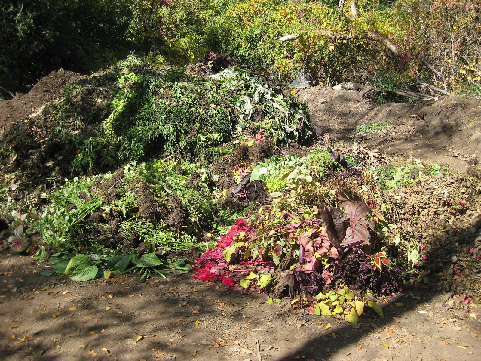 The grounds crew had a rewarding day of removing plants and accomplishing a wide range of tasks in perfect, 74 degree F, sunny weather. Larry checked over the water features, repaired some irrigation heads and spent most of the day testing our Holiday Lights Show (HLS) displays for repair needs. This is a timely project as we'll have to address the issues with these pieces that need repair very soon. Big John worked on lifting and potting up more elephant ears (Colocasia sp.) for winter storage. He also removed plenty of annuals with Kay, watered containers and moved on to other projects. He and Pat will run another load of tropicals to our storage greenhouse tomorrow. We're hoping that the frost wont be too severe but time will tell. Pat also removed many plants in the North American garden which also included our largest patch of impatiens. Pat also watered containers. Janice spent significant time in the sunken garden this morning. She removed annuals, raked leaves and started the clean-up process in that space that we'll accomplish daily to be ready for the Saturday event. Janice also tidied up containers and other elements near the Horticulture Center and watered. We hope to have some massive veggie picking this week in our beds around the Horticulture Center before it gets too chilly. I spent some time sorting through the remainder of our plants that need to go in the ground and am figuring out the labeling needs for these new plantings. I also planted a couple small trees and most of a recent iris donation that should look great. Directly below is a toad that I disturbed today and the look I got from this little guy is one that I get from the wife almost daily.... The second photo down is our increasingly colorful compost pile. Marv will push this around tomorrow and we'll continue to make room for the vast amount of organic material coming back to this pile.