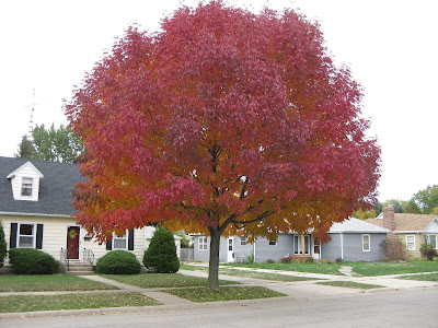 As my younger daughter and I walked the dogs yesterday, I was struck by the fall color this year. There were many theories that the drought and heat would adversely affect the fall color show this season. I think the colors look as vivid as always and are quite striking. However, I did notice the prevalence of ash (Fraxinus sp.) trees in all our yards, neighborhoods, parks and along the streets. Directly below is a large green ash (Fraxinus pennsylvanica) and the second photo down is the 'Autumn Purple' white ash (Fraxinus americana). Check out your neighborhoods and see how many of these trees are in evidence. With Emerald Ash Borer (EAB) a stark reality in our community, we need to consider the implications of heavy tree losses and what that means. Do more research on EAB to understand how it spreads and ultimately kills the tree. There are lots of chemical promotions for combating this problem although they are not promoted as 100% effective. Some communities are selectively removing ashes in advance of EAB which seems odd to me. Regardless of the approach, realize that there are over 700 million ash trees in WI and EAB has devastating potential to reduce this population in the coming decades. The loss of both of these trees below, assuming that scenario, results in the loss of the benefits that the tree also provides (shade, wildlife habitat, oxygen production, filtering of pollutants, mitigating stormwater runoff, etc.). I saw the EAB losses in MI and OH years ago and it was tragic. My comments here are only meant to encourage everyone to educate themselves on EAB and the implications for our communities and woodlands.