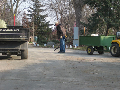 We had a great bunch of volunteers at the gardens today. Kay was in to tidy up her section of the shade garden and she'll be on temporary, self-imposed leave for 2012 until we get our seed order in after the New Year. She is a big help with seed processing as well although her garden efforts this year have been quite impressive. Bill O. (directly below) was in to tidy up paths, collect leaves and help with other projects as needed. Del (second photo down) was around all morning creating more deer cutouts for the HLS. His deer have been selling like hotcakes at the gift shop so he's frantically (and thankfully) trying to keep up with demand. Vern was also in for some carpentry work and mounted a new bench plaque for me. Maury came in and ran some very timely errands for us. Marianne (third photo down) was out in the gardens all the way thru the lunch hour working on HLS tweaking. She went around to check on all the 1/2 gallon milk jug luminaries and also repaired some different displays as well. Tom C. came in to help with more electrical improvements with Larry. Dick H. ran debris to the dump and Pat came in for some more pruning of crabapples (Malus) in various locations. We also saw Dr. Gredler and many others today too.