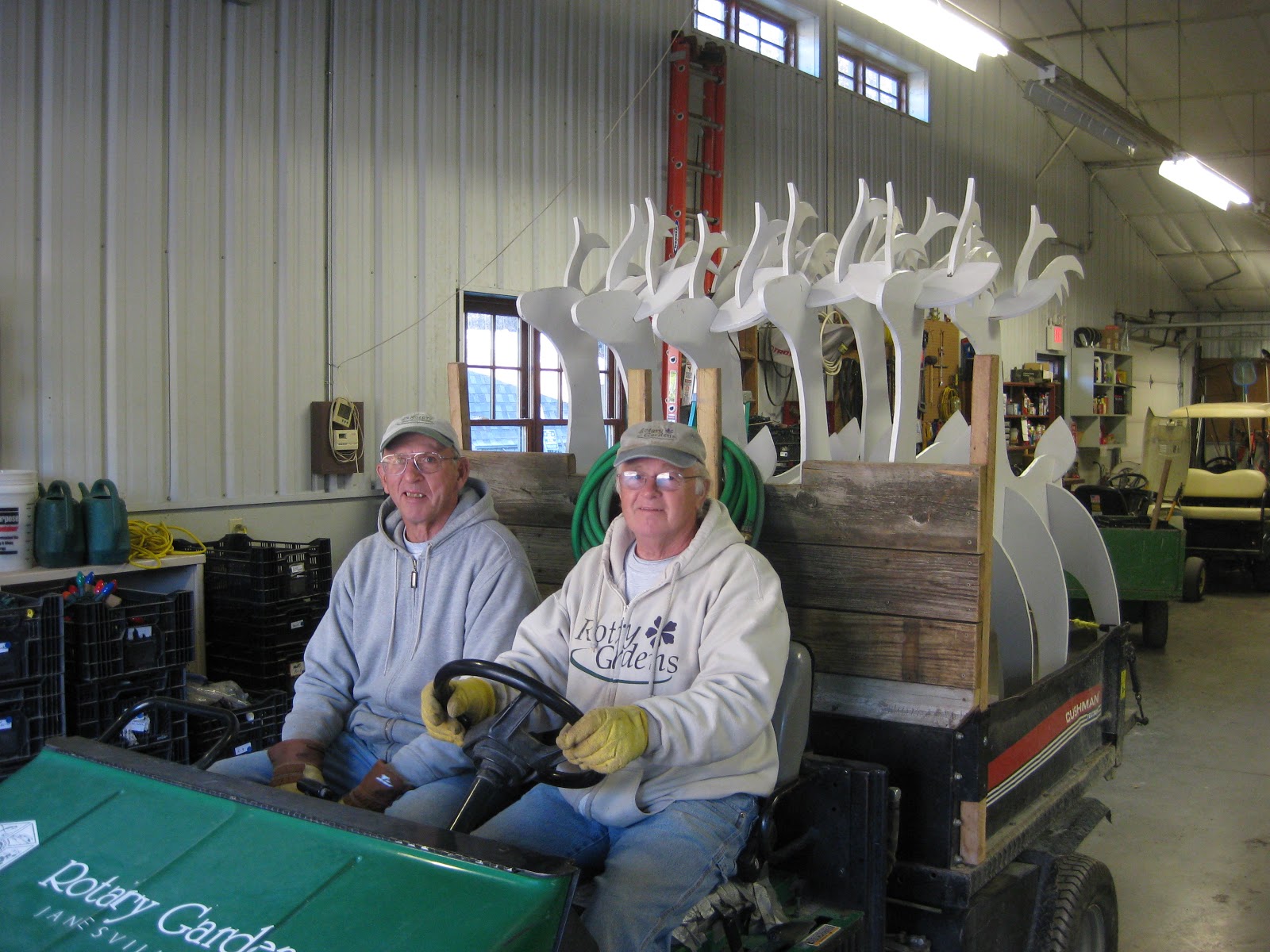The grounds staff had a very busy day out in the gardens. It was Pat's last day (on the payroll for 2012) and he spent most of the morning working on gardening tasks. He finished cutting back some roses (Rosa sp.) and did a nice job hauling the huge pile of leaves that Ron K. accumulated in the woodland walk. Big John worked on securing the deer displays in the sunken garden, some light HLS decorating and he put up many of our larger HLS displays around the gardens. John also helped haul some items over the Parker Education center for the symposium tomorrow. Marianne was in all morning and finished decorating the saucer planters in front of the main building (they are going to look dynamite). She then continued her work on spreading half gallon milk jug luminaries along the HLS route. She has a good system and much of the way the lights are placed is directly related to the available power. We've gotten better at this each year! Janice was in to help Kris K. with final preparations for the symposium which included getting all the name lanyards created (among other duties). It was also Janice's last day on the time clock for 2012. Marv and Terry worked on their deer/sleigh project which is bigger and better than last year and will be one of the neatest features of the HLS this year. I'll get some photos soon but to fully appreciate it, you'll have to come to the HLS! I worked on various HLS duties and some other tasks this morning but left early to try to "nap away" a persistent cold that I'm hoping to shake by my presentation tomorrow at the symposium. UGH!