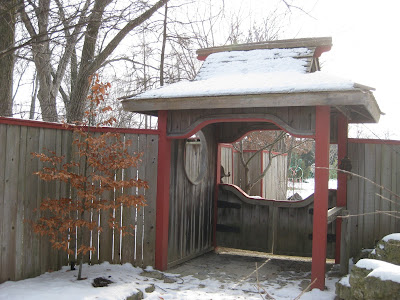 Today was quite mild with temperatures ultimately in the mid 30 degrees F. It was a nice day for a walk and some fresh air. My tour of the gardens was my first of the year and while I thought things looked pretty good, I was amazed at all the deer prints and poop throughout the gardens. They are certainly combing the gardens for snacking materials and I'm glad we did as much protective fencing and netting in December as we did. Above is the south entrance structure to the Japanese garden. Below is the 'Cinnamon Snow' hellebore (Helleborus) opening up by slow increments. I first photographed the buds back in November and have been keeping track of this one. This variety seems aptly named in this shot! I spent most of the day progressing with my seed orders and other time sensitive desk work. We also had a Garden Development Committee Meeting which included Dr. Gredler, Big John, Gary, Joanne, Hal, Maury, Christine and myself. We talked about our many 2013 plans and goals. Larry was here all day and focused on more Holiday Lights Show (HLS) takedown efforts.