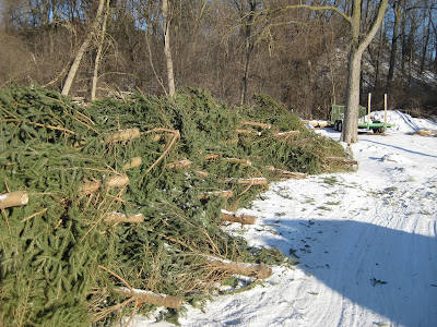 I continued with my seed ordering responsibilities today but also spent time finalizing details for our 2013 Photography Contest. Last year was our first year hosting this contest with the 24 winning photos (all taken at RBG) included in the 2013 RBG calendar. We're tweaking the details but are looking forward to more great submissions and a popular 2014 calendar that will also celebrate our 25th Anniversary. Details will be included on our website in the coming weeks. Larry continues to help orchestrate the dismantling of the Holiday Lights Show (HLS) which is very organized and ultimately should be finished in the next six weeks or so. The take down of this event is only second to the actual set-up in terms of the amount of time invested. I have a presentaton this afternoon on the Landscape Design for Winter Interest in Evansville, WI. While I also have plenty of meetings this time of year, my primary intent this week is to shorten the height of my "to be perused" catalog stack! Below are just some of the spruces (Picea) that await mulching after their effective use out in the HLS.