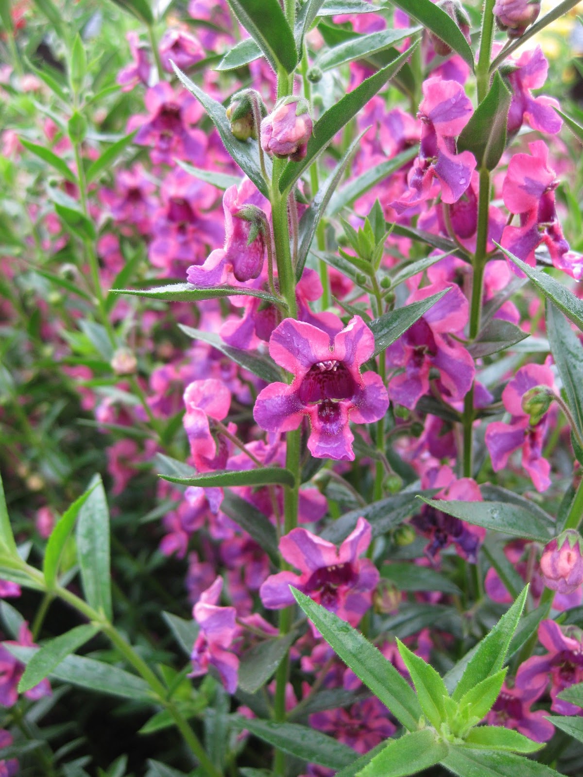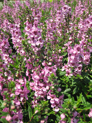 I've already given some winter presentations on new, exciting and trendy annuals. We usually plant around 150,000 annuals here at RBG each spring which represent between 700 and 900 varieties. I'm very pleased with our growing arrangements with five area nurseries that either start seed for us or will order plants for us as plugs and "bump" them in to larger containers to get some size before we pick them up and install them. I believe that every talk I've done on annuals in the last 10 years has included summer snapdragons (Angelonia angustifolia). Above is the variety 'Serenita Deep Pink' and note those exquisite blooms on a central stalk. First described in 1846, this annual is one of many Angelonia species that are native to Mexico, Central America and tropical South America. These annuals need full sun and do well in rich, moist soil. However, they are quite tolerant of sporadic drought and leaner soils and I can't say that I've ever seen a bad looking Angelonia. Truly. For many years, they could only be purchased as plants although now there are quite a few that can be started from seed (look for the Serena and Serenita series'). From being off the radar 12+ years ago to being so popular doesn't surprise me as they are very low maintenance and have high visual impact. We provide decent soil and water and they do the rest. While summer snapdragons run the color ranges of blues, violets, pinks and whites, there are some exciting new "bicolors" and a wide range of color shades now available. Some day we'll do a collection of Angelonias but I'm having trouble keeping up with all the varieties. Angelonia also has clean, glossy green foliage and continues to produce new flower spikes over the entire summer. Most varieties will fall in the 10" to 20" height range and the best visual effect is when varieties are massed (planted 9" apart). They are also wonderful components in the mixed, sunny container. The other Angelonia varieties that I've photographed and featured below have identification under the image.