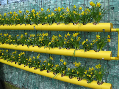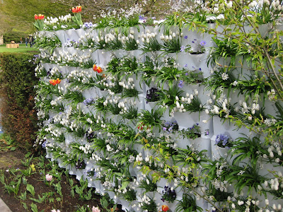 I worked on the last of my WPT Garden Expo (www.wigardenexpo.com/) details this morning while Larry and Bill started putting needed supplies in our trailer for transport to Madison on Thursday morning for Expo set-up. The guide seen above was in every Wisconsin State Journal this past Sunday and will be the guide for the event. I hope this event sees another record turnout this year. I believe there were over 21,000 in attendance last year. Denise and I are still designing our booth layout but it should be nice. Olbrich Botanical Gardens has been kind enough to lend us some plants for the booth as we would have difficulty transporting plants back and forth. My talk on Vertical Gardening will be at 4:30 pm this Saturday. This is one of four that I'll give over the three days. My first talk on Vertical Gardening was one year ago at the Garden Expo and it was a packed room. I made up a new version of this talk for this year using lots of my images from travels last year to the Netherlands and a summer trip to Michigan The first two photos below were at Keukenhof (Netherlands) with the third photo from the Floriade (Netherlands). I saw lots of vertical gardening situations at both of those gardens/events but also around the landscape in general. The fourth photo down shows a Woolly Pocket (www.woollypocket.com/) planter at the Michigan State University 4H Children's Garden and the last two photos were from Dow Gardens in Midland, MI. I have no shortage of ideas for vertical gardening opportunities here at the gardens now!