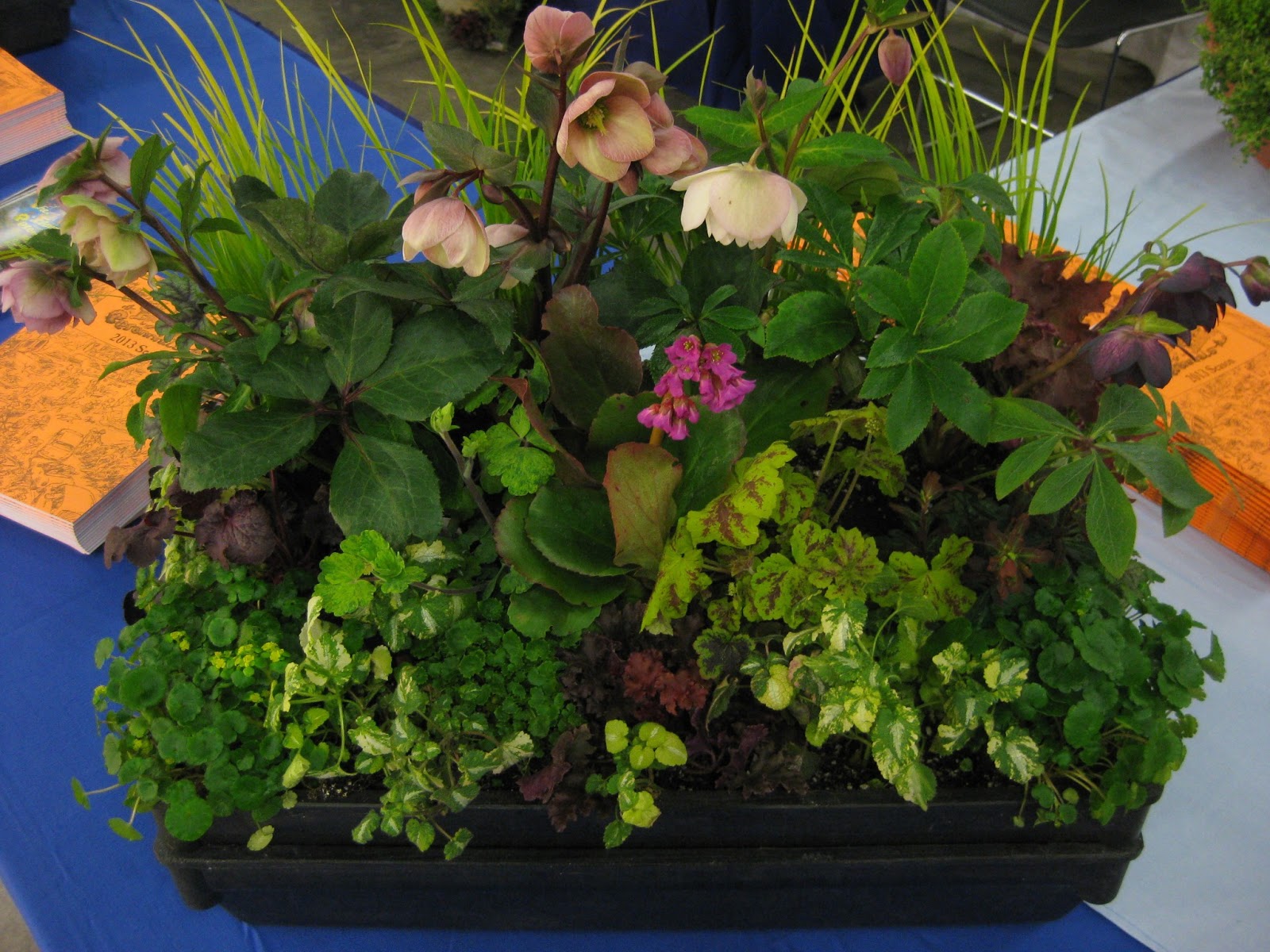 I saw some pretty nice booths and some new vendors this year. I loved the display (above) for Allen Centennial Gardens (UW-Madison) that Ed Lyon and his volunteers put together. Look at the use of painted PVC pipe and ornamental grasses to create these huge paint brushes. Really cool. Below is part of the Wisconsin Hardy Plant Society booth which always has nice visuals. If you're in to perennials, this is a group you should join as they have great lectures, fun trips and plenty of social opportunities including plant sales and swaps. The second photo down is one of the perennial arrangements at The Flower Factory booth. They always do a nice job and are one of my favorite nurseries. They are also very supportive of the gardens. Further down are some troughs with alpine plants at the booth for the WI/IL Chapter of the North American Rock Garden Society. I hope they get more members and potential alpine garden enthusiasts as they are a fun group and actually had two work days at the gardens in 2012 and did a nice job improving our alpine garden at RBG. At the bottom is my first picture of the day. As I sweated through my coat and sweater this morning shoveling 4 metric tons of snow in front of the Parker Education Center, I couldn't pass up this shot of our contorted filbert (Corylus avellana 'Contorta') also called Harry Lauder's walking stick. What a nice specimen augmented by the snow. Thanks to all that helped today and we look forward to two more days of promoting the gardens!