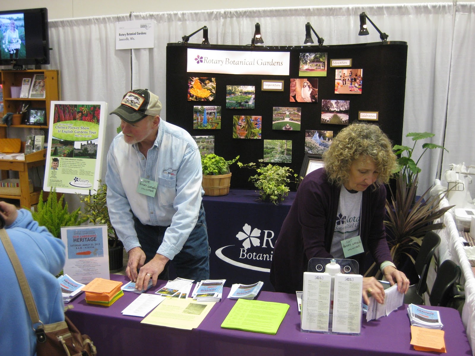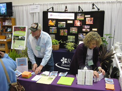 I'm back home after day three of the Wisconsin Public Television (WPT) Garden Expo. It was a long weekend but well worth being there and participating. There was some concern about the possibility of freezing rain this morning but it was warm enough to just be rain. It ended up feeling like a rainy March day and my travels to Madison and back were safe and uneventful. Attendance today was steady but lighter than I remember in the past. I think the worry over slick roads affected attendance today. However, yesterday was packed (see top photo) and we had lots of attendees stopping by the booth and attending my presentations. My talk on Annual Grasses yesterday had a moderate crowd but the Vertical Gardening seminar was quite full. I had one more presentation today (Trendy Annuals) and had another moderate crowd. It was nice to touch base with so many people and we appreciate all our volunteer help with facilitating our booth at this event. Kris, Margaret and I were the RBG staff at the booth today but we had help from Dennis, Gena, Pat, Pete, Mary N., Jumbo Jim and Jody M. Special thanks to Jim and Jody for helping tear down the booth and pack up our trailer in the rain. They make quick work of this process and have helped for 8+ years. The images below are just a little of what I saw this morning out in the vendor area. It was nice to have some other Janesville representation at the Garden Expo with a booth from K&W Greenery. I talked to so many people today but was always pleased to hear the compliments or comments on the lights show, attending a wedding, etc. The overall "presence" of the garden will continue to get stronger as more people visit and "spread the word." Sorry for the short blog but I'm dead on my feet!
