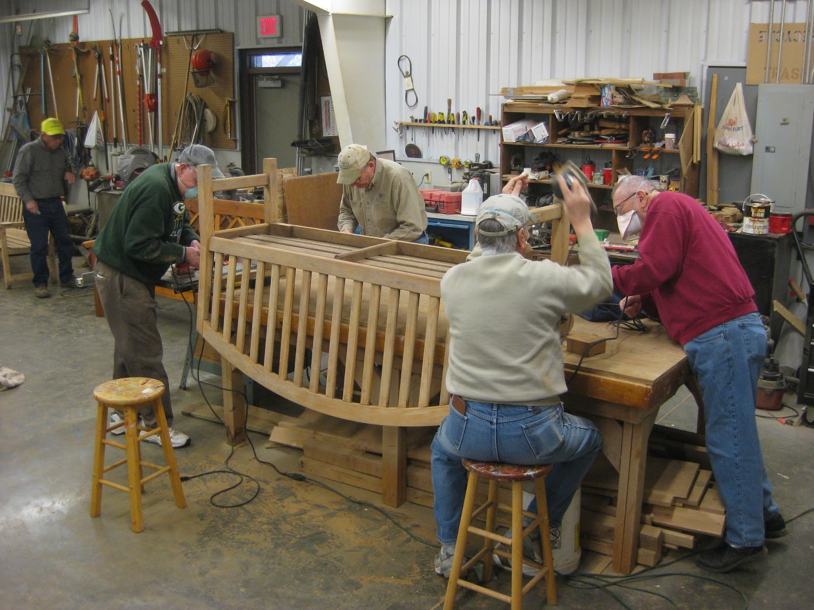 It's hard to believe that spring is only two days away after seeing another 3" of white stuff coming down today. Temperatures this week will be very "un-spring-like" and will be almost 45 degrees colder than this time last year which was of course, unseasonably warm. While we may be done with snow for the spring, we'll need some thawing and melting out in the gardens to allow us to bring in the remaining elements of the Holiday Lights Show. We also need to focus on our spring garden clean-up duties as soon as possible. Despite the sour weather, we had a nice turnout of volunteers which included Dave, Dick H., Jim and Vern all working on sanding this teak bench directly above. In the far left corner is Gene (yellow hat) who was also sanding along with Ron Y. Del continued to clean and sharpen tools. Pat and Urban braved the cold and snow and did some pruning in the arboretum before coming back inside to warm up. Dr. Gredler continued with some painting projects. Gary continued to work on labels and we'll be mounting our new woody plant labels (photo below) very shortly on concrete anchored stakes. Mandy started this process this afternoon. Oddly enough, that top label for the Deerproof Western arborvitae (Thuja plicata) should read "Deertasty" as it is far from being unpalatable by the nine deer we saw leaving the gardens this morning. We also saw Stan, Jumbo Jim, Maury, Bill O. Cindy B., Kris K. and many others today.
