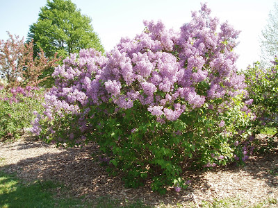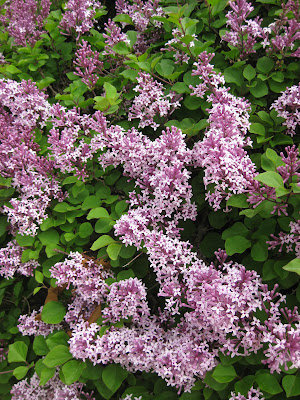 When lilacs are in bloom, I think few would contest their beauty in flower and value in scent. Lilacs (Syringa sp.) have along history in cultivation. There are between 20 and 25 species of lilacs that are in the olive (Oleaceae) family and most closely related to privet (Ligustrum sp.). With a native range of southeastern Europe to Eastern Asia, lilacs have proven adaptable and hardy in a wide range of climates, soil types and situations. Directly above is our cutleaf lilac (Syringa x laciniata) which receives lots of attention when in bloom for the color and scent. The finely dissected leaves fool many in to not believing that it could be a lilac. Regardless, we have probably 20 different types of lilacs around the gardens which is a small fraction of what is available. Lilac flower forms might be single or double but universally, they bloom on old wood. This means that pruning should be done immediately after flowering as later timing will sacrifice flower buds already set for the following spring. Rejuvenation pruning of older canes is warranted as specimens age and the more sun the better for a high volume of blossoms. In colder, wet springs, we see mildew issues on the foliage of many selections which is primarily cosmetic. Fungicides could be effective for mildew control but regardless, collect all autumn leaf debris from the base of the infected lilac and haul them out of the way to minimize re-infection the following spring. While flowers are the primary ornamental consideration for selection, some varieties have nice foliage that might be variegated or perhaps will get a nice fall color. The variety 'Aucubaefolia' below has the best variegation in early spring that combines well with the flowers. However, most variegated lilacs lose their variegation by mid-summer when it gets considerably hotter. Aside from the Japanese tree lilac seen above, another tree lilac to consider is the Peking lilac (Syringa pekinensis) which also will get in the 20'-25' range, bloom in late May/early June and also features some exceptional, coppery, peeling, ornamental bark. The selections China Snow and Beijing Gold can be seen at the bottom. My verbage above doesn't do this genus justice but do appreciate the durable role that lilacs play in our landscapes and at least value what they do in spring to buoy our moods and engage the senses!