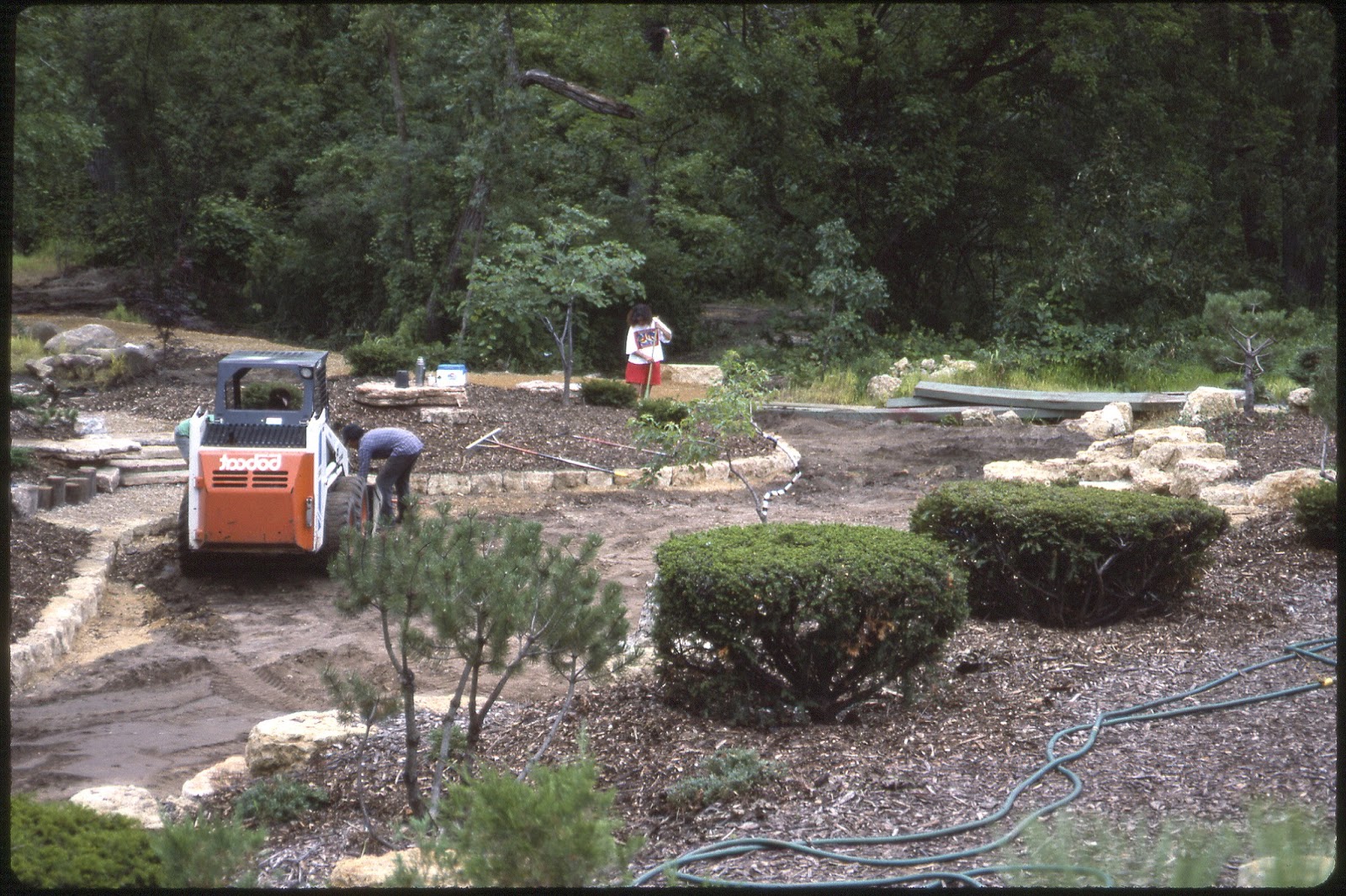 The Japanese garden continues to look great after 24 years of development and care. Above are four relatively recent shots of that garden space. With recent discussions on a brochure for this garden and the need for more history/photos of this garden for our website, the importance of this garden can't be understated. This was the first garden started at RBG although as it was developed, there were also improvements going on in the formal gardens, gazebo garden, arboretum and on the Rath Environmental Center (our first visitors center). Designed and developed by Dave, Wayne & Scott Petranek, the Japanese garden continues to be our most popular garden at RBG has been ranked as one of the top 25 Japanese gardens in North America. This garden has had a special group of volunteers and staff dedicated to this space. Early volunteers included Dr. Yahr, Tom McKaig, Karen McKaig, Dr. Neeno, Mrs. Roehrdanz (can't remember her first name) and Little Jerry. Little Jerry then came on as staff and that was his focus garden for many years. Jumbo Jim (and the RECAPPERS) have been a huge help in that garden for many years and Stan K. has now joined the group that maintains this neat garden. Below are just some of the many historic shots that we'll ultimately utilize in some fashion in the near future.