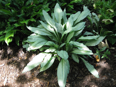 Today I'm featuring lungworts (Pulmonaria sp.). The top photo shows the variety 'Diana Clare' and the leaf shot above is from the variety 'Majeste'. Also called Bethlehem sage, Jerusalem cowslip, spotted dog and many other common names, this tough perennial is native to Europe and Western Asia. In short, lungworts are great in the partly shaded or full shade garden for the combination of spring flowers (showy but quick in mid to late April) and ornamental foliage. Flowers are typically pink, blue or more commonly, opening pink and transitioning to blue. However, there are selections that are a deep raspberry color or even white. The rough, "sand papery" leaves are durable and rarely affected by insects, diseases or nibbling deer. Leaf coloration will transition from spring to summer with those having white or silver becoming more intense. We have many Pulmonaria varieties in some very tough soils in shadier locations and they are durable, adaptable and drought tolerant. The dry spell last summer was tough on those we couldn't water frequently but I can't ever recall saying, "Wow, that lungwort is dead." They are tough. I recommend selecting them for the foliage (which comes out in rosette clusters). As a clumper, this perennial will ultimately widen out but is a nice compact mass that rarely needs division (accomplished in spring). Lungworts look nice paired with hostas, hellebores, ferns, bleeding hearts, Jacob's ladder, coral bells and other perennials for the partly shaded border. Don't put them in too much sun or the leaves get scorched along the edges and they look ragged and "crispy". Most varieties are in the 10"-15" range for height with spreads from 12" to 24".