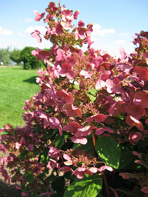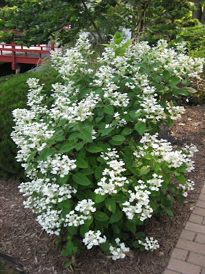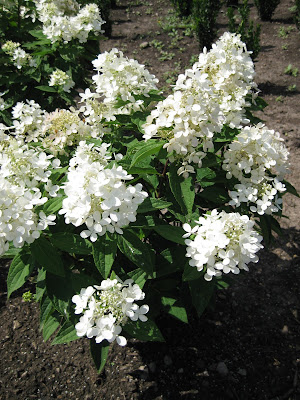 I'm featuring the panicled hydrangea (Hydrangea paniculata) today which is a wonderful shrub for the sunny or partly sunny landscape (see top photo, unknown variety at Olbrich Botanical Gardens). Ten years ago, the variety 'Pee Gee' was the "go to" option for this tough shrub and was known for large, white flower clusters in the summer that would later transition to pink in late summer and amber by fall (see photo directly above). Essentially the flower interest extends from July well in to fall and also has some winter interest as long as the flower clusters stay attached to the stems. How many flowering shrubs feature 4+ months of flower interest? Most of us are familiar with the smooth hydrangea (Hydrangea arborescens) with 'Annabelle' being the most popular variety of this species. This species is quite shade adaptable and will tolerate a wide degree of soil and lighting conditions. Understand that hydrangeas are not drought tolerant and become "thirsty" very quickly and will let you know when they need a drink. The panicled hydrangeas are no exception and really perform best in full sun conditions in moist, well-drained soils with a mulch layer for moisture retention. The mature size of any selection should be taken in to account when considering desired and proper placement. With mature sizes for most varieties being in the 8'-12' range with a similar spread, they require a lot of "real estate" in our landscapes. However, recent developments have focused on reduced size or compact varieties that will stay in the 4'-7' range and have more versatility in the average home landscape. There are many compact varieties offered now and their reduced size makes them perfect as foundation plants, border components, focal points and general interest plants.