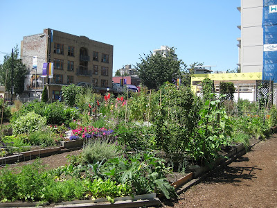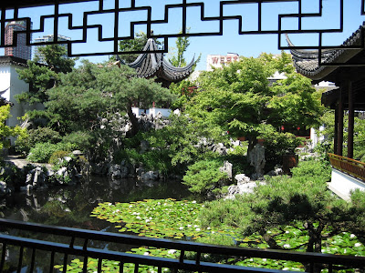 My day started with the 3:20 a.m Van Galder bus (from Janesville) to O'Hare airport this morning. Of course, the check-in process was just as much fun as the security check point but I did make it to my gate with plenty of time to spare. The 4.25 hour flight went well and I found myself quickly enjoying Vancouver this afternoon after checking in at the hotel and for the Perennial Plant Association Conference. I'm sharing a room with Ed Lyon, former RBG Director and now Director of Allen Centennial Gardens (UW-Madison campus). We walked around a bit later this afternoon and had a nice dinner at a local restaurant (Thai). Ed's airport/travel nightmares were remarkable (including sleeping in the Denver airport last night..) but we're looking forward to a great week. Above and below are photos from the Dr. Sun Yat-Sen Classical Chinese Garden. I saw this garden with my last trip to Vancouver (12 years ago?) and enjoyed it just as much. Further down are shots from the Davie Village Community Garden just down the street from our hotel. It was nice to see this garden in the middle of urbanization and the amazing amount of work and commitment to maintaining this space is evident. Tomorrow Ed and I go on a bus tour to many gardens. Some of the images below have descriptive captions.