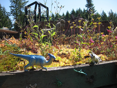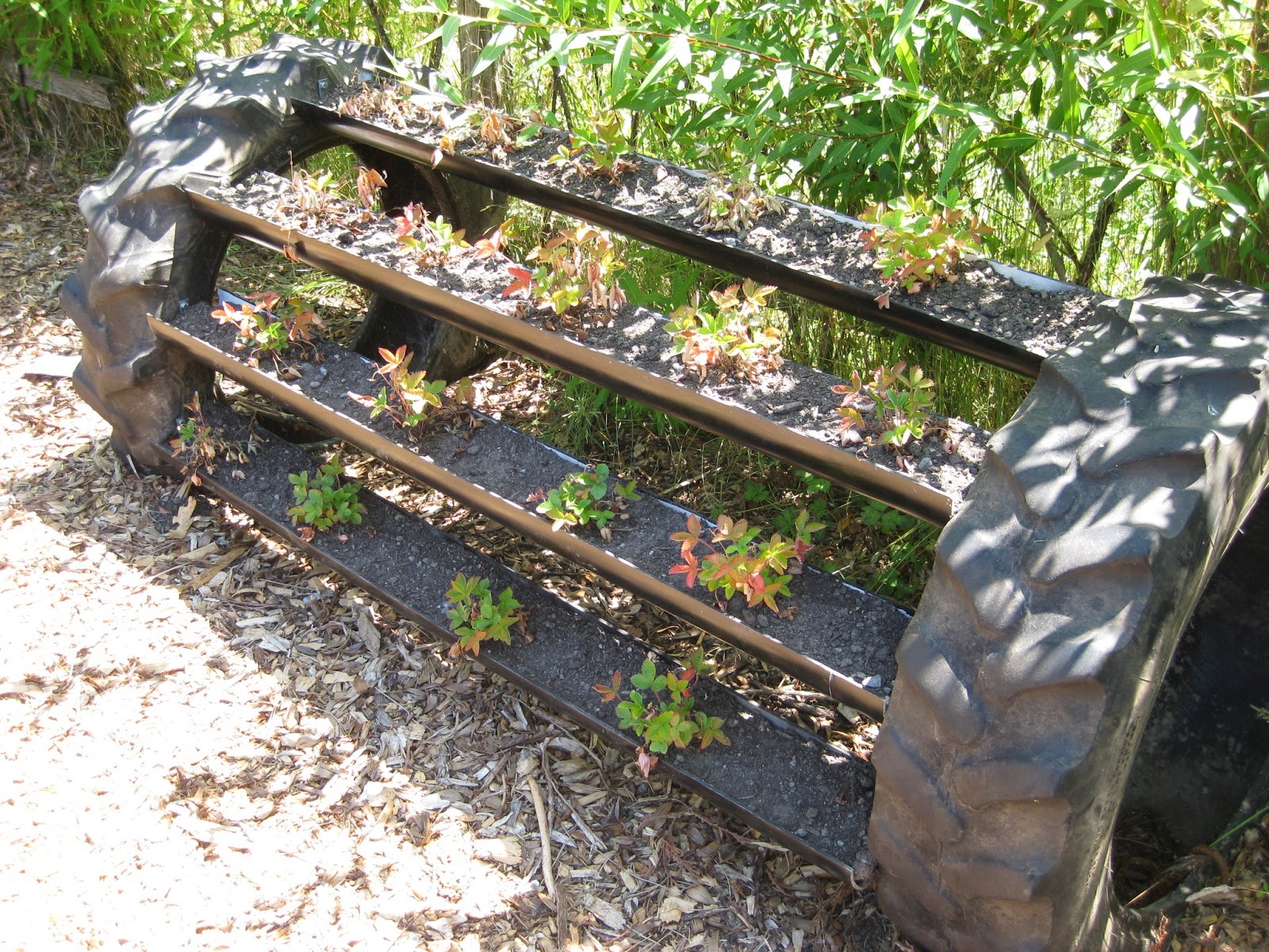 repurposed tires and gutters for a "layered" planter