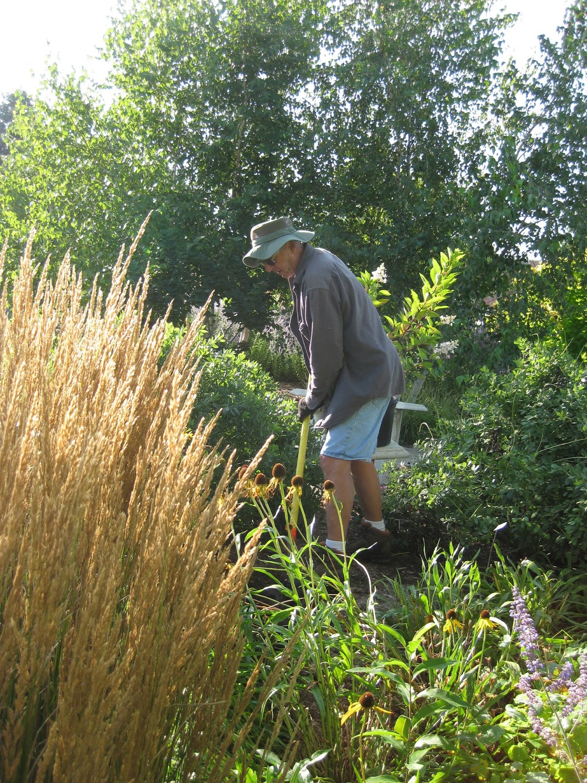 As mentioned above, the entire grounds staff was involved with watering. I ran many irrigation zones this morning and Larry and John will continue to do the same on Saturday and Sunday respectively. Terry (above) planted some shrubs and push mowed but spent most of his day setting up and rotating sprinklers around the gardens. We're trying to soak everything down out in the gardens and Terry also did most of the containers. Cindy also did some watering, did a nice job on the cutting display (featuring All-America Selection winners), tidied and did more watering. Pat was in for a half day and also push mowed, watered and did some more tidying. Janice had various gardening duties this morning but ultimately she and I facilitated the field day for Master Gardener registrants that focused on ornamental edibles, seasonal plants and some conversations about woody plants. It was a busy day. I ended the evening doing a presentation for about 100 Master Gardeners who were at the garden for their opening reception. It was a nice group and I enjoyed talking to many of their members. More garden interest photos below!