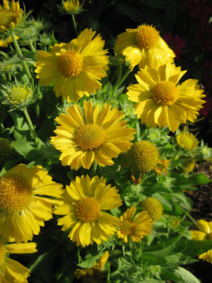 My blog title doesn't refer to any precipitation although we sure could use some now! The "storm" included a busy weekend with five weddings, the WIMGA (Wisconsin Master Gardener Association) conference activities on Friday, Family Fun Day (Sunday), etc. It is nice seeing the gardens busy and I'm still pleased to see so many visitors going through the gardens daily (today too!). Above is a photo of some of the plants in the formal annual sections of the Italian formal garden. The lime green, plume celosia (Celosia plumosa 'Sylphid') is predominant (in the lime themed area too!) but there are other goodies in there as well including that blue dinosaur kale (Brassica oleracea 'Lacinato'). Although the gardens are exhibiting a "touch of autumn" with early cottonwood (Populus deltoides) leaves fluttering down, there is still lots of color to enjoy. Below are some other recent shots featuring some nice plant features out in the gardens.
