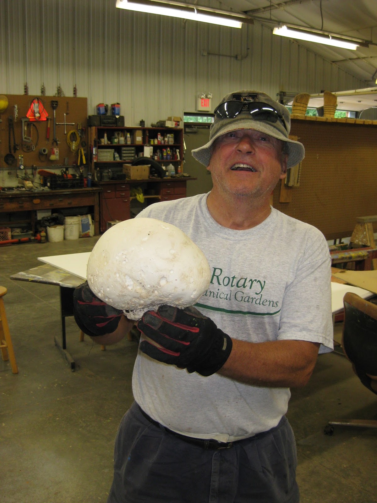 That blog title probably caught some attention. We didn't find an actual skull today but Pat found some huge puffball mushrooms out in the gardens as he was weeding. Everyone got a kick out of these and apparently they are edible. I personally feel that no mushrooms should ever be considered edible but that's just my opinion! We had another busy Thursday with activity around the gardens and another consistently strong volunteer turnout. The gardens continue to look great and while some rain would help, we are keeping up with watering as the nights have been cool and the days are still quite comfortable with highs in the upper 70 degrees F. Next week looks to be a lot warmer. We saw plenty of visitors today and I think the orange theme can be considered a solid hit. I've had at least a dozen people tell me that they never really liked orange until this year!
