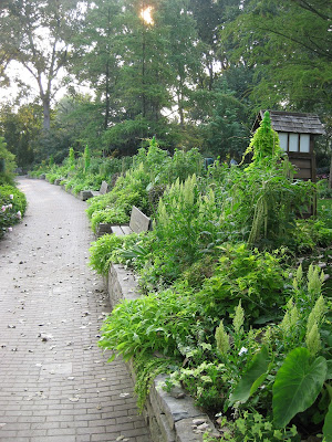 We had some great volunteer help today. The photo above and two below show three of our all-accessible planters that the Grumpies built. Our volunteers (Victoria, Jordan and Jenna) planted and now maintain these. They have filled in beautifully. We are experimenting with different styles of these planters and hope to include more in the gardens proper in the near future. Eva was in for a nice round of weeding this morning and we saw Magda tidying up her area. Don and Pearl continue to tweak their lime border (third photo down) which is looking awesome. Dr. Gredler came in for mowing and Stan tidied up in the Japanese garden. Our Garden Development & Maintenance Committee met today (Big John, Iza, Maury, Hal, Larry H. and myself) and we covered many recent developments. Iza spent some time weeding in the alpine garden as well. We also saw Lisa I., Urban and many others. Further below are some additional shots from today.