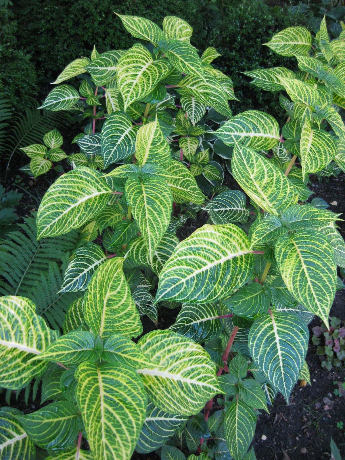 The weather was simply perfect today with sunshine, a light breeze and temperatures in the upper 70 degrees F. It was certainly perfect gardening weather and the gardens in general are at their most colorful right now for summer. We had a great turnout of volunteers and we were all happy to see many visitors out in the gardens. We're doing some "fine tuning" out in the gardens in preparation for our Love In Bloom - A Garden Bridal Expo this Sunday at RBG. See our website for more details if you're interested. Of course we want the gardens at their best all of the time but we added a bit more "polish" today. Above is the 'Fatal Attraction' purple coneflower (Echinacea purpurea) which is known for this bright magenta color and slightly upright petals that don't droop. Directly below is a massing of the compact, 'Viette's Little Suzy' black-eyed Susan (Rudbeckia fulgida var. speciosa) with the 'Summer Beauty' ornamental onions (Allium tanguticum) directly behind the grouping. The second photo down shows the beautiful foliage of the 'Blazin' Lime' bloodleaf (Iresine hybrida) which is adding some nice color in the shade garden right now as a seasonal addition.