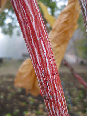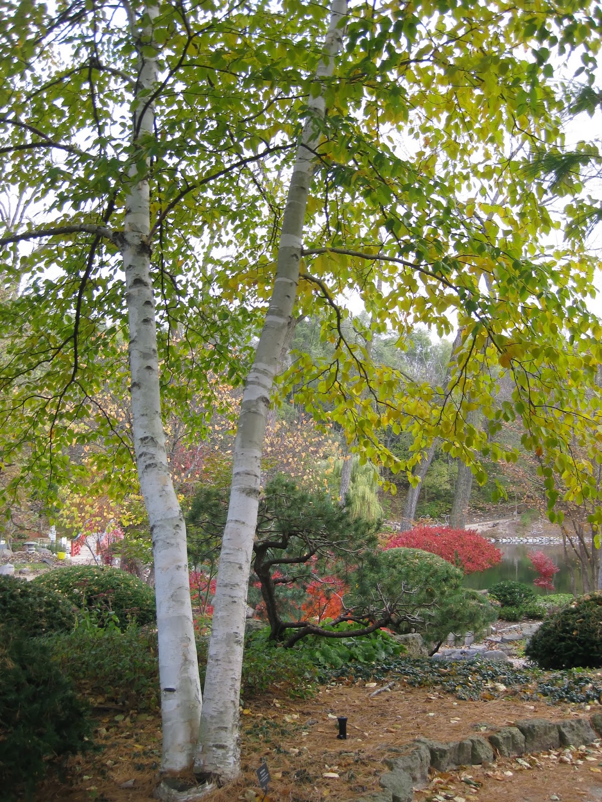We had a small, elite grounds force today although we spent quite a bit of time inside today. Cheryl was here for a half day and worked on some indoor projects at the Horticulture Center including cleaning and label peeling. She did head out for some garden clean-up near the Japanese garden as well between rain drops. Janice helped organize our morning volunteers, worked on HLS preparations and is working on some final details for the Fall Symposium this Saturday which should have a great crowd (over 110 registrants and counting right now...). Larry pumped out and drained some of our water features and spent time adjusting some lights in areas where moisture might be an issue. He bounced between some other projects as well. I caught up on much needed desk work but am poised to get back out with my cords. Below are some additional images from the gardens this morning.