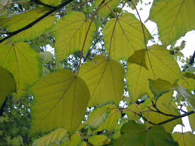 yellowing fall color of the moosewood or striped maple (Acer pensylvanicum) - woody tree