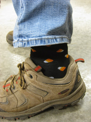 Cindy's festive candy corn socks from yesterday! Happy Halloween!