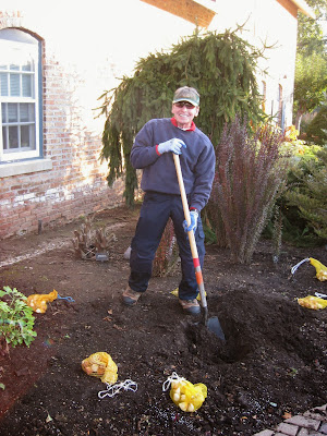 Arnie D. planting tulips