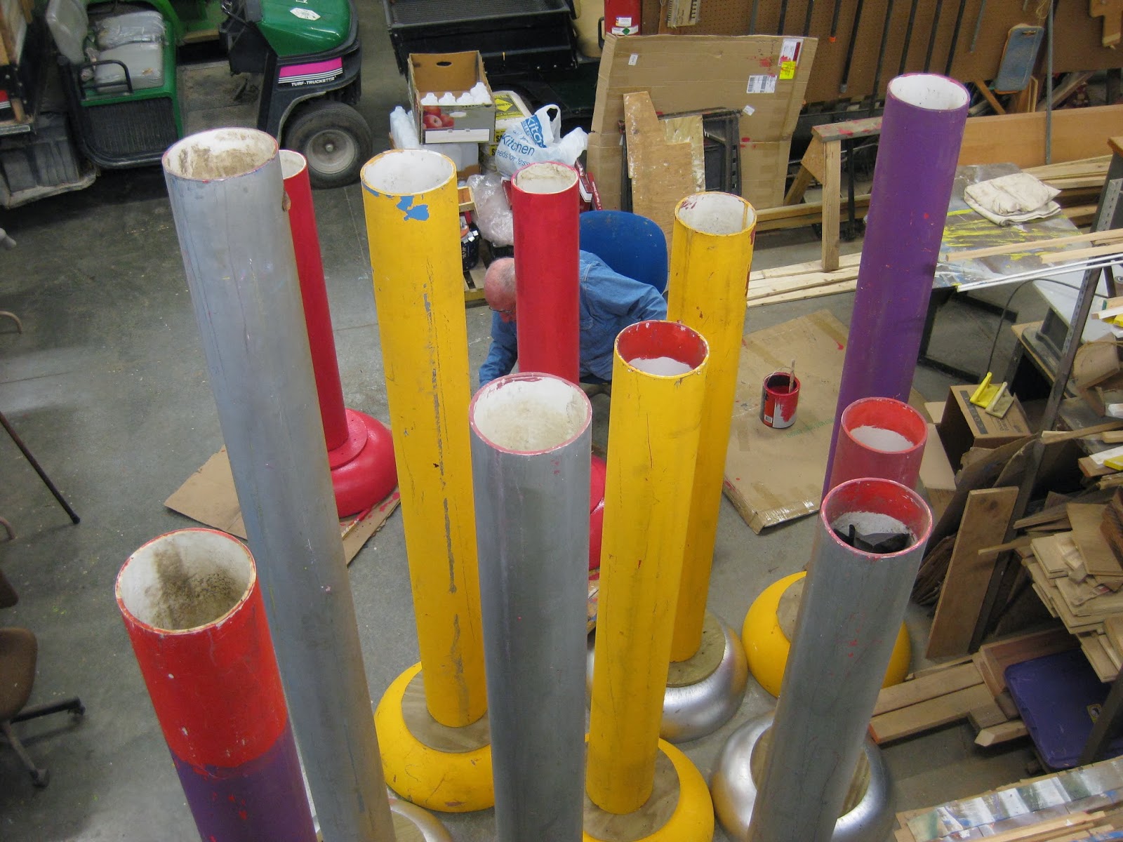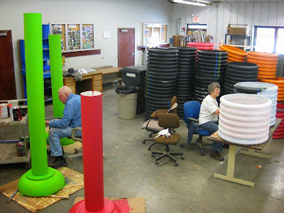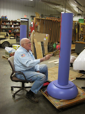 It was business as usual today despite the pending holiday weekend. Above are Dr. Gredler and Patrea painting/re-painting some of our garden elements for next year. Many of these containers will go in the Nancy Yahr Memorial Children's Garden and be part of the second year of our "Pollinator's Paradise" theme. We like the idea that these are re-purposed containers and a nice use of plastic that will outlive all of us (and the next 50 generations...). Pat M. was the tough guy today and went out in the gardens to continue wrapping yews (Taxus) with burlap. With the colder weather, the deer have already been in the gardens foraging and we're frantically trying to protect some of their favorite snacks (arborvitae, yews, small pines, etc.). Maury brought in some supplies and we also saw Gary S., Dick H. and Dick P. Chuck S. came in to check on recycling needs and Janice worked on some projects for 2014 as well. It was a quiet day but I was able to focus on next year. Directly below is Big John finishing his last day (for 2013) yesterday. He's holding all of his "task maps" from the year and with mixed emotions (mostly joy I think) and tears (probably joyful too), he recycled them before he left. John will help run the Holiday Lights Show (see our website for dates and times) with both Larry and me as well. We had a nice pre-Thanksgiving lunch and I was also able to see Jenny, Cheryl, Cindy, Vern, Kris, Terry and Kay.