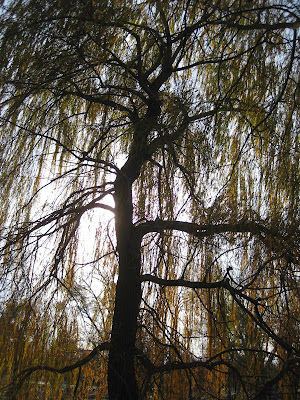 a view from beneath a golden weeping willow (Salix alba 'Tristis') - woody tree