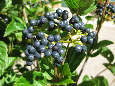 With today being so dreary and dismal with mist and rain all day, I thought we should have some color in today's blog. All of the woody plants featured here have not only ornamental fruits (among other attributes) but those that ultimately become an important food source for birds as well. If you are specifically gardening for wildlife, incorporating some of these selections in your landscape might be a consideration. Make sure you know your plant first in terms of proper selection, placement and care. For instance, the two winterberry (Ilex verticillata) selections both directly above ('Sparkleberry') and below ('Autumn Glow') can be tricky as they prefer moist, acidic soils and require both a male and female(s) for fruiting (the females). They can be a challenge to keep happy but healthy females sure add some late season impact and retain fruit color well in to winter. Some fruits of the plants featured in this blog are targeted immediately by wildlife (not just birds) but other species or varieties might become tastier later in the winter when their nutritious value becomes more vital. Regardless, ornamental fruits can add impact to the late season and winter landscape and also accomplish "double duty" by keeping our wildlife happy and healthy. This is just the proverbial "tip of the iceberg" but don't hesitate to do more research on your own and ask questions at your area garden center.