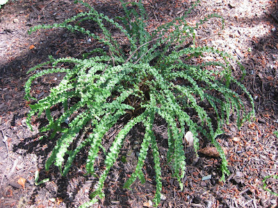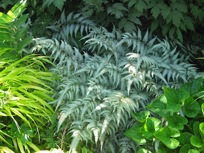Above is a nice shot of a waterfall with plenty of ferns in the Japanese garden of Butchart Gardens in B.C. Canada. The ferns are primarily the broadly native maidenhair fern (Adiantum pedatum) which is one of my "textural favorites." My plant focus today is on awesome ferns starting with the letter A (well, at least their Latin name starts with an A). There are so many great ferns for the garden and their value goes beyond just visual texture. Many offer color, form, function and they can also be effective groundcovers and neighbors for other garden perennials. Read more on ferns later down.
