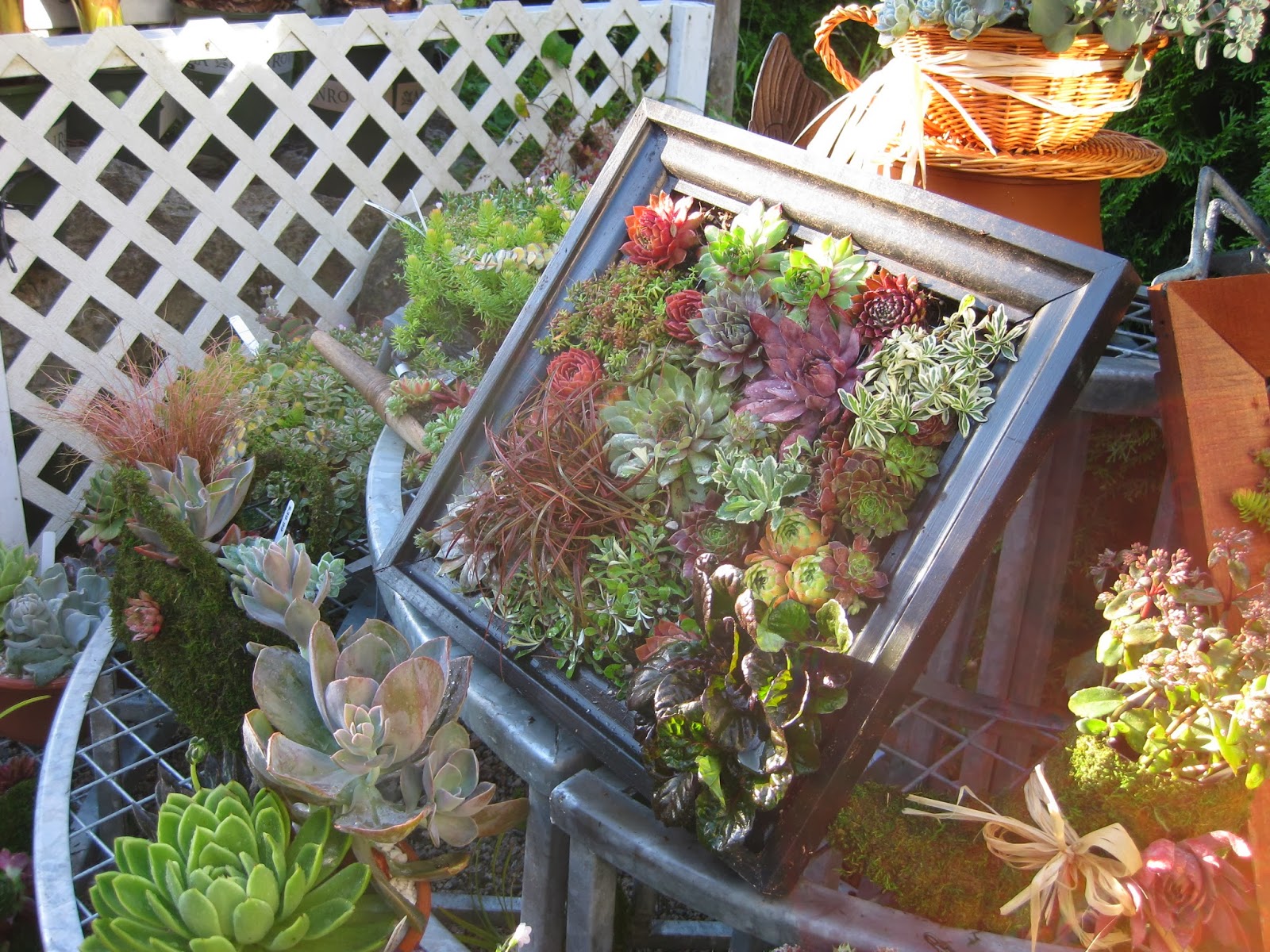 Today we had Pat out in the gardens bringing back in HLS lights for processing and storage. He has developed some nice procedures that will help streamline this monumental process and improve our storage and care of our lights and displays. Dr. Gredler came in for more painting of our Adirondack chairs and Maury was in for some priming work. I also saw Mark S., Rollie, Ryan C. and Steve S. I'm still catching up on some projects and doing the "January shuffle" which includes seed ordering, presentation preparation (WPT Garden Expo on Feb. 7, 8, 9., check it out!), plant records updating, etc. It's a fun time of year but I'm already feeling the "crunch" 10 days in to the New Year. Speaking of the Wisconsin Public Television Garden Expo (www.wigardenexpo.com/), RBG will again have an informational booth and I'll be doing a couple presentations as well. This event now draws over 20,000 attendees annually. The top photo was taken last year at one of the Expo vendor booths. That looks like a nice re-use and modification of a mirror frame for a "Vertical Vignette" using minimal soil. This "framed arrangement" is neat and prompted my blog topic today.