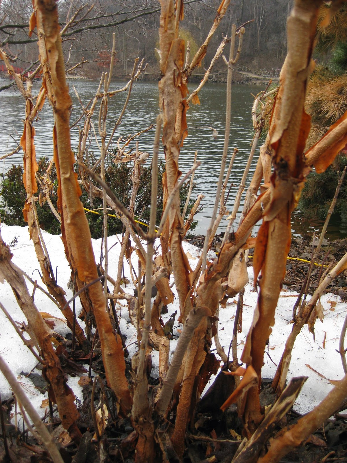 I finally got out in the gardens today and was inspired by Marsha's photos yesterday (on the RBG FACEBOOK page) of our earliest bulbs coming up. I noted some other colorful plants including the 'Thunderbird' foamy bells (xHeucherella) seen directly above. This is actually the late season fall color that was freeze-dried and preserved on this evergreen foliage. New leaves will replace these in the coming weeks. The current timing of emerging bulbs is actually what I would consider normal. Abnormal timing was two years ago when I could take these same photos at the end of January! I had a great tour and while I started to absorb the significant scope of our spring clean-up efforts over the coming weeks, it's always nice to "reconnect" with the garden. The amount of deer and rabbit damage is significant but not unexpected or record setting (knock on wood). We'll hit the ground running with path clean-up, debris collection and bringing in the rest of the Holiday Lights Show (HLS) as time and labor allows. We're seeing more volunteers return and will have no shortage of work. I was able to finalize all of our seeds for the growers and will deliver those tomorrow and Friday. We're also getting geared up for our annual Spring Symposium this Saturday with two speakers from the Chicago Botanic Garden and one from the University of Minnesota Landscape Arboretum. This event has a strong horticultural therapy focus and we've just announced a June 17th Symposium entitled Incorporating Gardening Into a Therapy Program. This event is geared towards activity directors for facilities that may have residents or clients that would benefit from a specific horticultural therapy experience. Check out our website for more information. Below are some additional highlights from my soggy tour today.