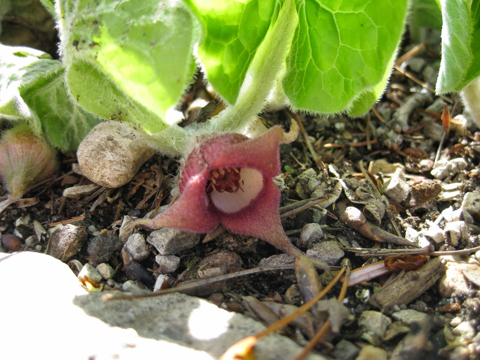 the ground level flower of Canadian wild ginger (Asarum canadense)