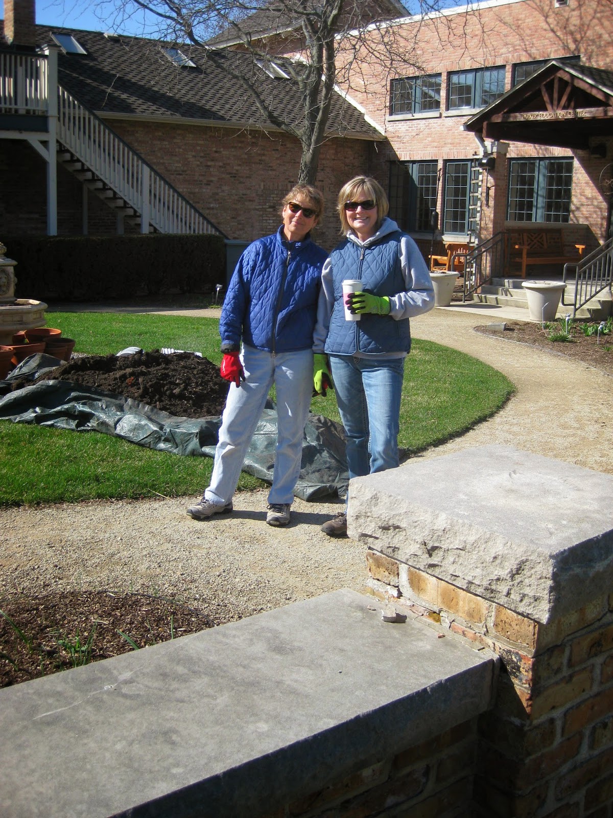 At one point this morning, we had twelve volunteers in action which is quite a few for a Tuesday morning. Above are Kathy (left) and Eva who have become a great team. The ladies continued to tidy up the reception garden and were very thorough in their approach! Kay was in for some major weeding in the Nancy Yahr Memorial Children's Garden and is engaged in a battle with some of our earliest weeds in that space (trust me when I say that Kay will be victorious!). Maury came in to run some errands and Bev D. helped with some office work. Dr. Gredler was out in the gardens for aeration and reseeding efforts for the gazebo garden lawn. We also saw Marsha M., Tom H., Kathy H. and many others. The photos below capture the remaining volunteers in action.