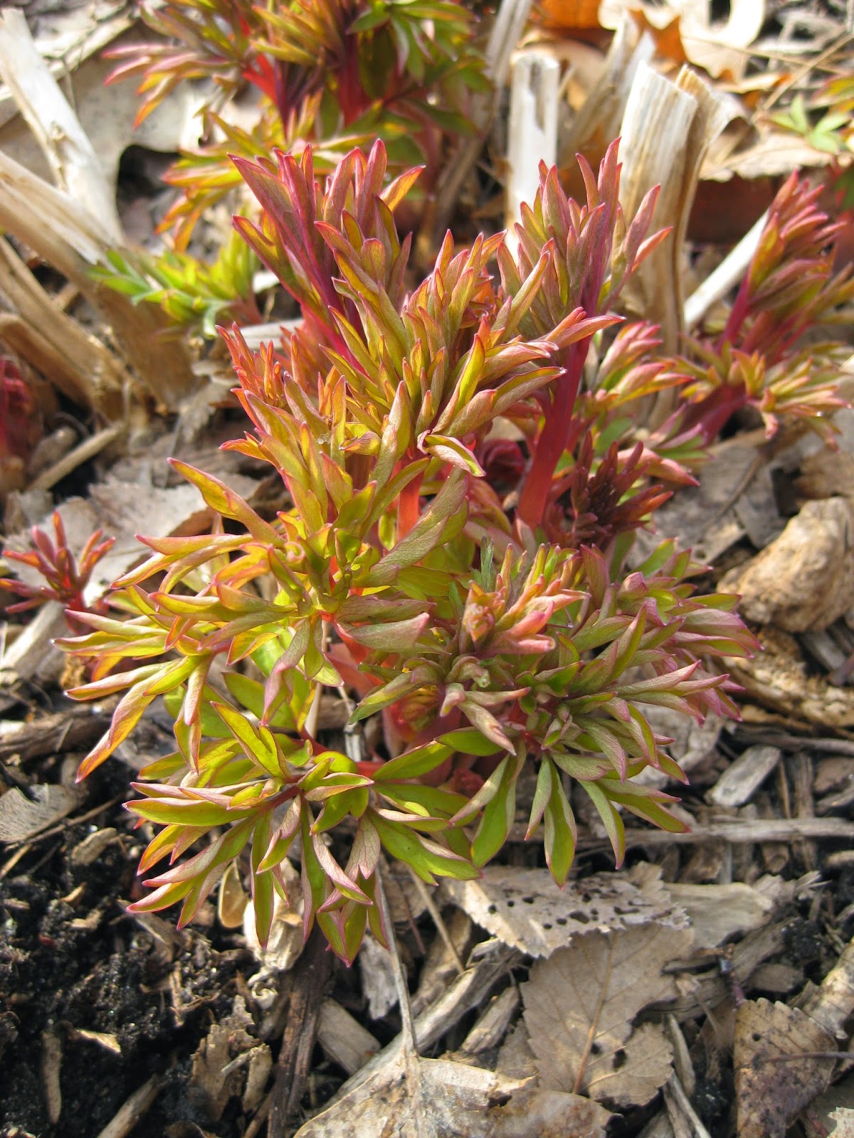 emerging 'Goldheart' bleeding heart (Dicentra spectabilis)